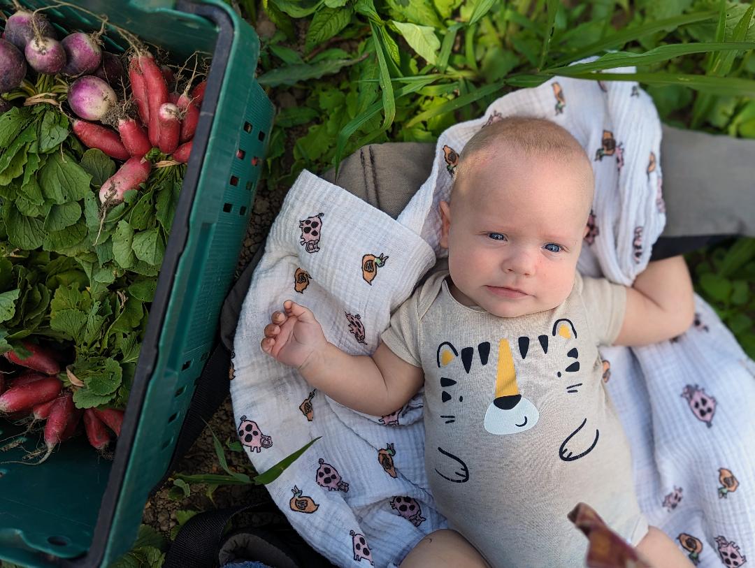 Little Tadhg has energy to spare (if you’ve seen him, you know what I mean) so his favorite thing to say is “fast, fast”! Thankfully, this is an important motto on the farm because the clock is always ticking. We have to seed, plant, harvest, and set up as fast as our little hands and feet